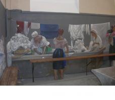 Un très bel hommage rendu aux lavandières avec des peintures de Bernard Gout sur les murs de ce lavoir clos.